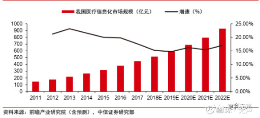 根据前瞻研究院,2010-2017年,我国医疗信息化行业市场规模逐年递增,增速保持在20%左右的较高水平。