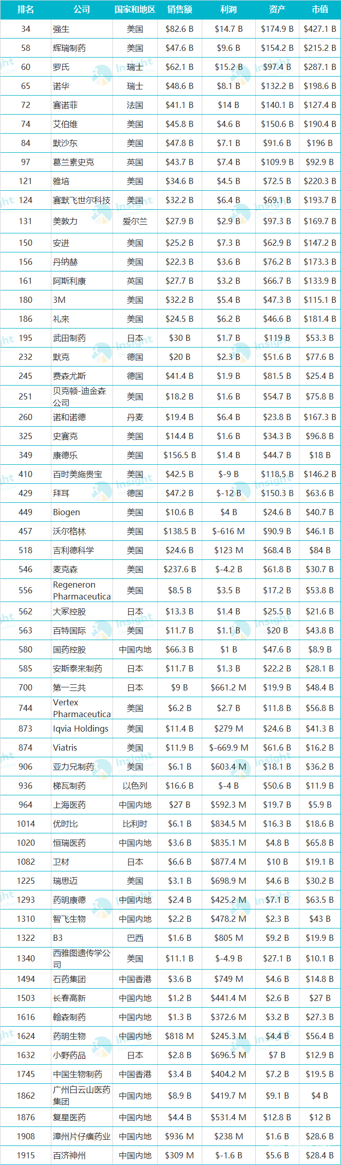 福布斯全球企业2000强榜单,14家家国内医药企业上榜